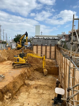 梅雨入り前の土留め掘削工事
